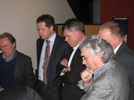 Belangstellend kijken v.l.n.r. Peter van der Laars (Sc Dordrecht), wethouder Dion