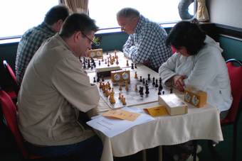 was de tegenpartij in de 4e ronde. Kees verloor, Teus jr., remise, ikzelf verloor en Annemarie won weer: uitslag 1½-2½ verloren. De 5e ronde bracht een gemakkelijke overwinning