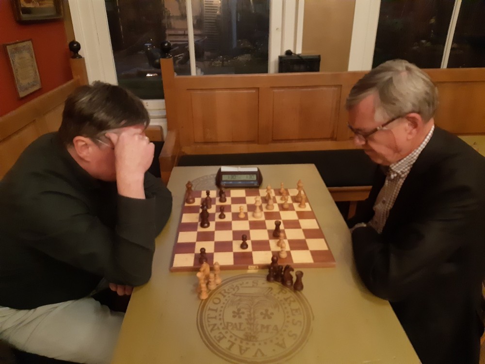 Met knikkende knieën treedt Rob Truijens met wit aan tegen Willem Weerdesteijn, geliefd en gevreesd om zijn geniale invallen en dramatische uitglijders. Willem wil er fris tegenaan, maar Rob geeft hem daar niet de kans voor. Met een catenaccio-formatie waar Inter Milan jaloers op zou zijn, zet Rob het gehele bord op slot, waarop beide heren het punt delen. (Rob Truijens - Willem Weerdesteijn ½−½).