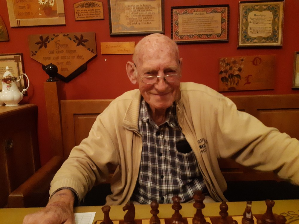 Cor Paans verdedigt zich met zijn Cor O' Kann tegen Jisk Liemburg. Jisks zet 3.e5 blokkeert het centrum met de Doorschuifvariant (witte pionnen op d4 en e5 tegenover zwarte pionnen op d5 en e6). Jisk heeft meer ruimte en probeert de zwarte koning aan te vallen. Met een heroïsche verdediging neutraliseert Cor de Jiskiaanse agressie waarop wit knarsetandend in remise moet berusten. (Jisk Liemburg - Cor Paans ½−½)