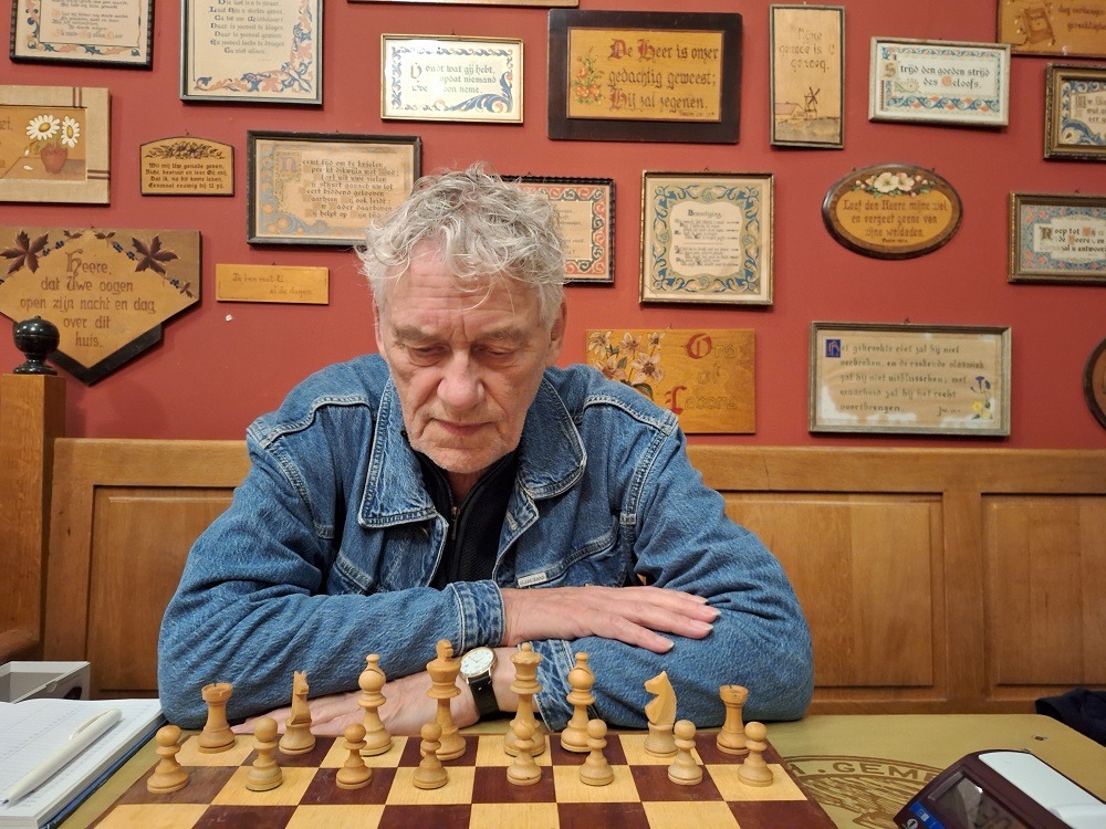 Kort na het gongsignaal dat de start van de partijen aangeeft zag ik bij het bord van Han van Gorkom en Rob Truijens gekomen aan de kant van Han een stuk meer staan dan aan de zijde van Rob. De tweede keer dat mijn aandacht even door de gebeurtenissen aldaar werd afgeleid van mijn eigen partij werden de stukken al weer opgeborgen. Kennelijk was Rob de tegenslag niet meer te boven gekomen. (Han van Gorkom - Rob Truijens 1−0)