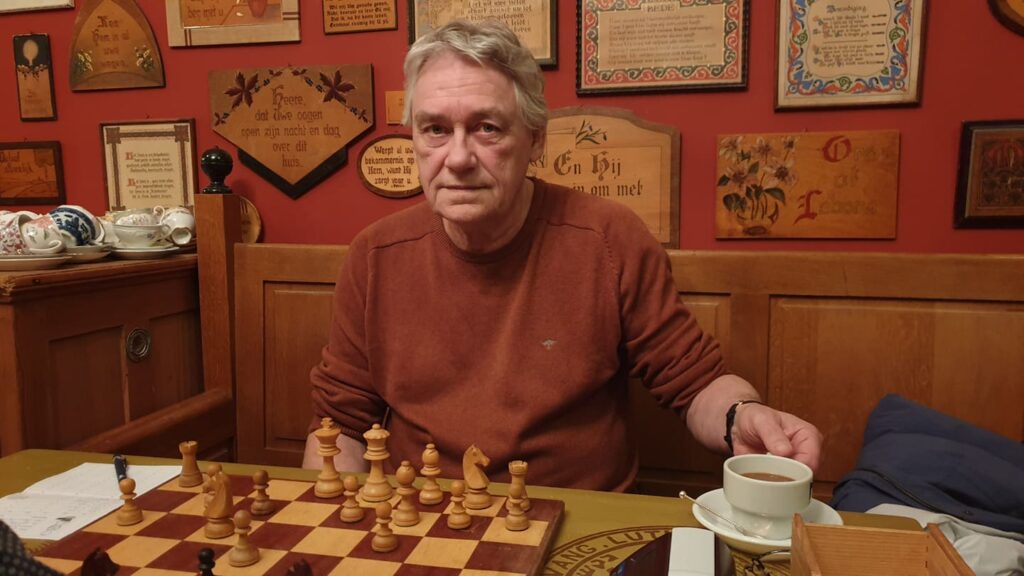 Van onze vaste correspondent in bange dagen Jisk Liemburg kwam het volgende relaas binnen: "In de vorige competitie kon ik (met wit) nog winnen van Willem Weerdesteijn. Maar nu met de zwarte stukken? De opening was het Geweigerd Damegambiet, zo las ik tijdens het naspelen op Lichess. En achteraf bleek, dat ik het concept niet heb begrepen. Je moet op enig moment toch Pbd7, b6 en Lb7 spelen. Alle drie de zetten heb ik niet gedaan en dat was merkbaar. Zwart was voortdurend aan het zoeken naar een goede stelling en had telkens het gevoel dat Willem een tikje beter stond. We mochten in de kapel spelen, zou het daaraan gelegen hebben? Gelukkig was het er wel warm genoeg. Tijdens de 17de zet bood ik remise aan en bleef, indachtig het eerder op de site gepubliceerde remiseverhaal, zitten. Na enig nadenken accepteerde Willem. We hebben nog een 20-tal zetten gedaan en alles wees er op dat het wel terecht was. Afsluiting met een biertje en genieten van de worstelingen van de nog bezig zijnde clubleden maakte de avond perfect." (Willem Weerdesteijn - Jisk Liemburg ½−½)